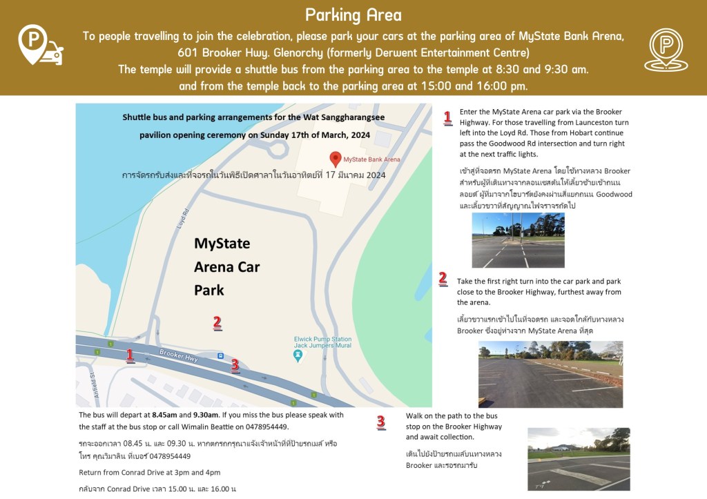 To people travelling to join the celebration, please park your cars at the parking area of MyState Bank Arena, 601 Brooker Hwy. Glenorchy (formerly Derwent Entertainment Centre)
